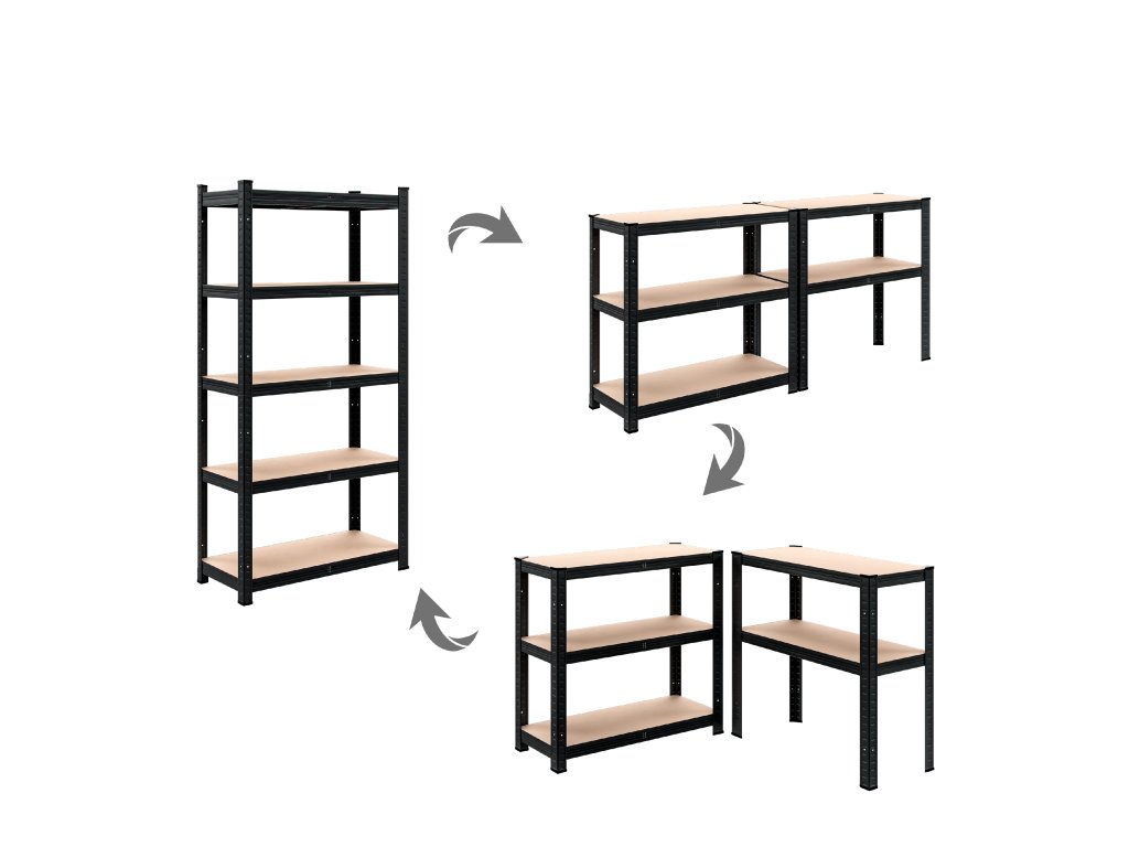 Regál je vyrobený z kvalitného kovu s povrchovou úpravou ktorá chráni pred koróziou a opotrebovaním. Všetky nosné časti sú navrhnuté tak aby zostal pevný aj pri úplnom zaťažení a poskytoval bezpečné odkladanie vecí vo vašej dielni domácnosti alebo sklade. Nohy regála sú vybavené ochrannými plastovými koncovkami ktoré chránia podlahu pred poškriabaním.