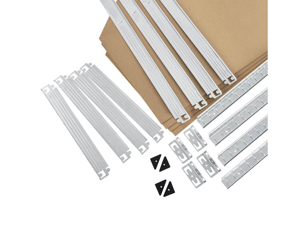 Vďaka dvojdielnym vzperám je možné police postaviť aj ako polovýškové prevedenie s pracovnou doskou, čo je napríklad vhodné na umiestnenie pod schodisko alebo do šikmej strechy. Montáž je rýchla a jednoduchá, nie je potrebné vŕtanie ani skrutkovanie. Zásuvný systém umožňuje bezproblémové zostavenie políc v priebehu krátkeho času. Súčasťou je 10 plastových nožičiek, ktoré sa umiestňujú na hornú aj spodnú časť rámu. Tieto prvky chránia podlahu pred poškriabaním a zároveň poskytujú konštrukcii vyššiu stabilitu.