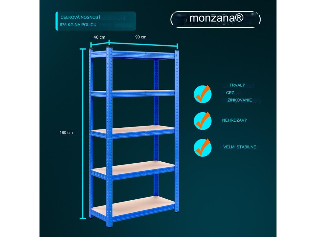 - Nosnosť regálu: 875 kg - pri rovnomernom rozložení záťaže