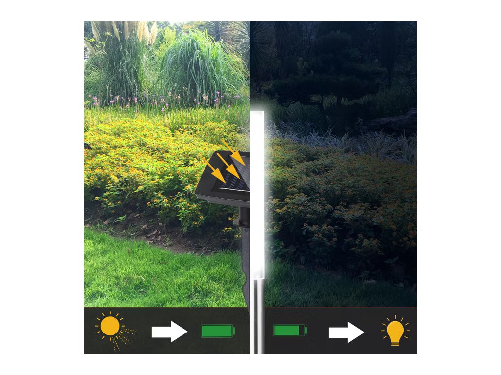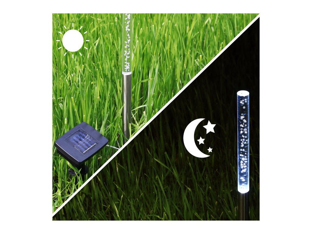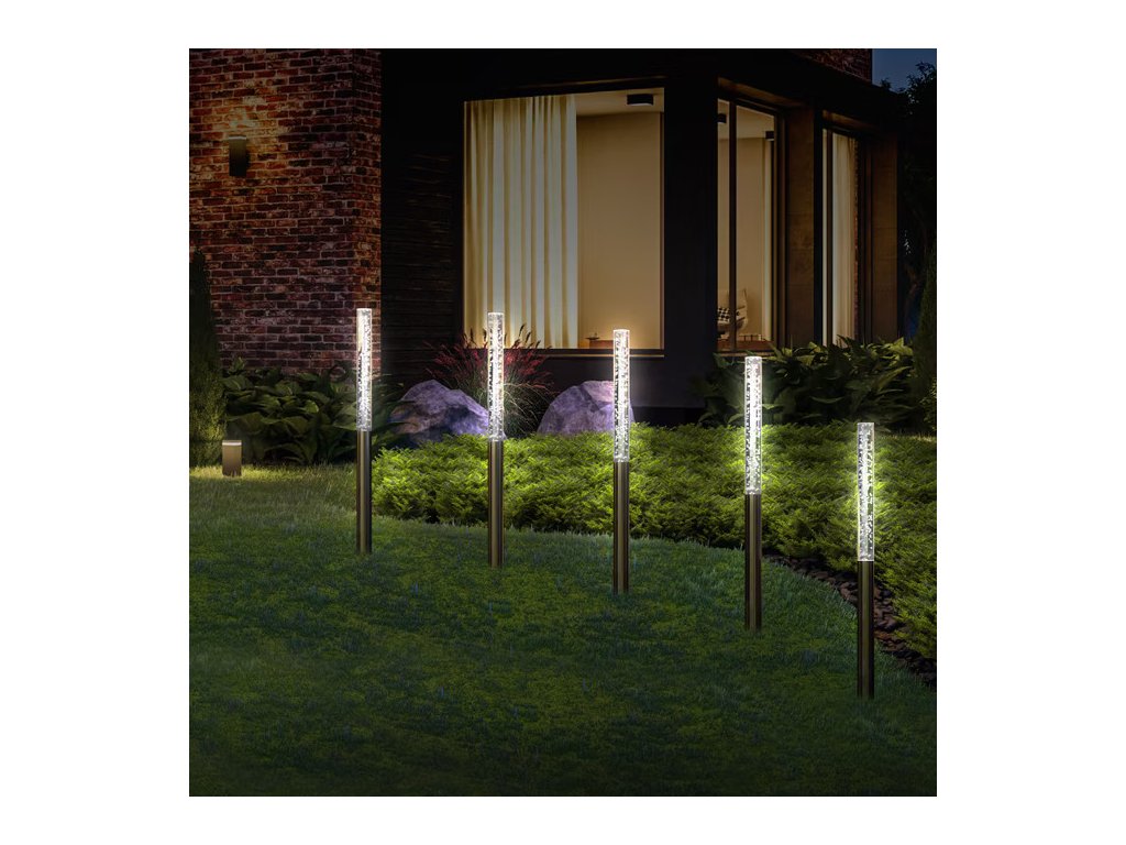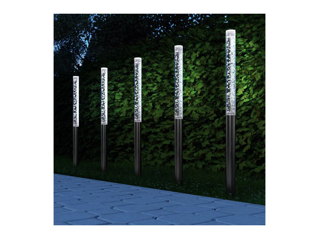 Tieto moderné LED solárne lampy dodajú vašej záhrade jedinečný nádych. Vďaka inovatívnemu dizajnu sa stanú výrazným prvkom vášho exteriéru a upútajú pozornosť na prvý pohľad. Integrované solárne články zabezpečujú ekologické napájanie svetiel až na 8 hodín. Ich odolnosť voči striekajúcej vode zaručuje bezproblémové využitie v exteriéri za každého počasia.