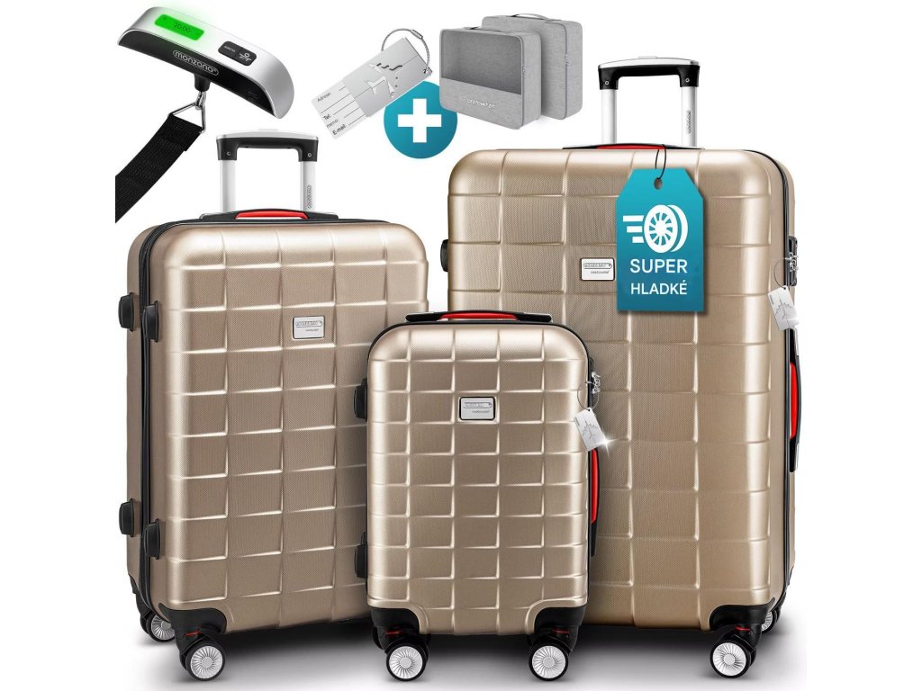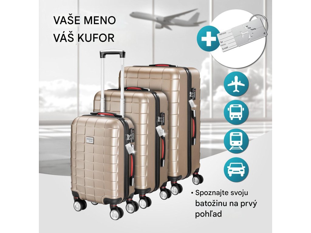 Set cestovných kufrov 3-dielny s príslušenstvom - champagne