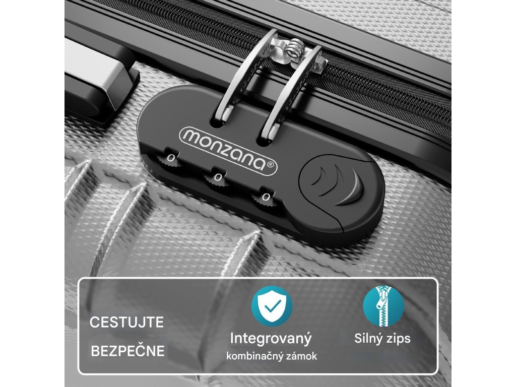 4-dielny set kufrov je dokonalým spoločníkom na cesty. Kvalitné spracovanie a množstvo možností balenia ponúka vysoký komfort cestovania. Vnútro s podšívkou je možné rozdeliť a má aj napínacie popruhy a praktickú sieťovanú priehradku. Kufor má tvrdý obal, ktorý sa vyznačuje vysokou odolnosťou a nízkou hmotnosťou. Kufríky sa dajú pohodlne presúvať pomocou zdvojených koliesok s ľahkým chodom, ktoré je možné otáčať o 360° a majú robustné teleskopické a tvarované madlá (horné a bočné). Kombinačné zámky nastavíte jednoducho potiahnutím páky, potom zadáte číselnú kombináciu, páku opäť uvoľnite a nové číslo je nastavené.