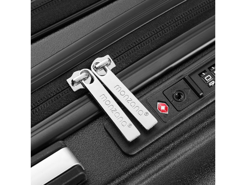 Vnútorné vybavenie zahŕňa elastické fixačné pásy a samostatné vrecko vo väčšej veľkosti, čo umožňuje lepšiu organizáciu oblečenia a drobností. Menší kufor disponuje rýchloprístupovým vreckom vhodným na notebook alebo tablet, aby ste mali dôležité zariadenia po ruke počas cestovania. Bezpečnosť batožiny zaisťuje integrovaný číselný TSA zámok, ktorý je vhodný najmä pri cestovaní do krajín s kontrolami TSA.