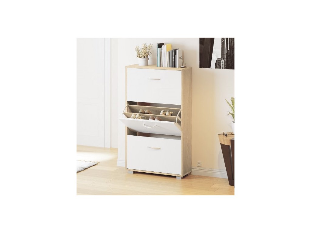 Skrinka na topánky 115x60x24 cm - buk/biela