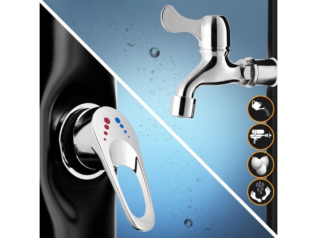 Elegantné čierne prevedenie sa hodí do každej záhrady alebo k bazénu. Vďaka výške 209 cm a štíhlemu tvaru je sprcha praktická a zároveň estetická. Montáž je jednoduchá a rýchla, pričom pripojenie na vodu zvládnete bez zložitého náradia.