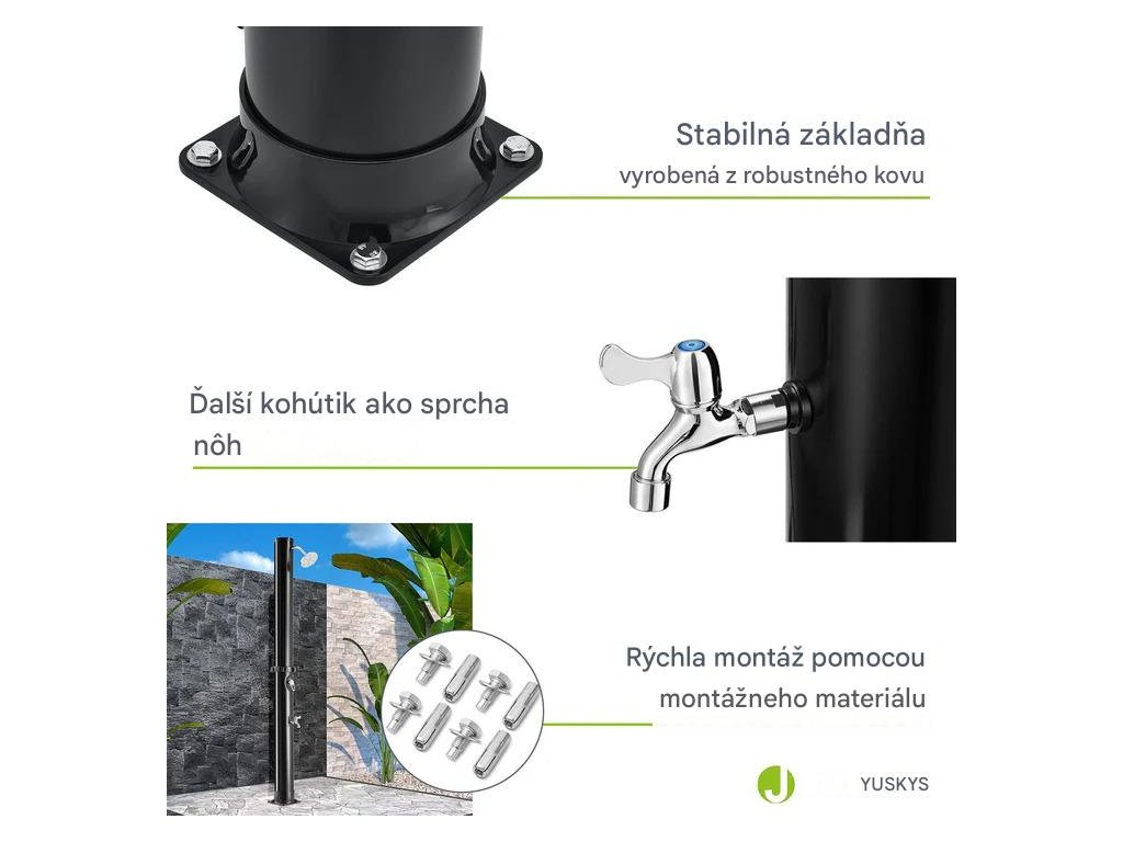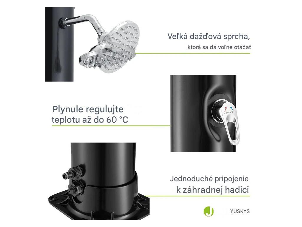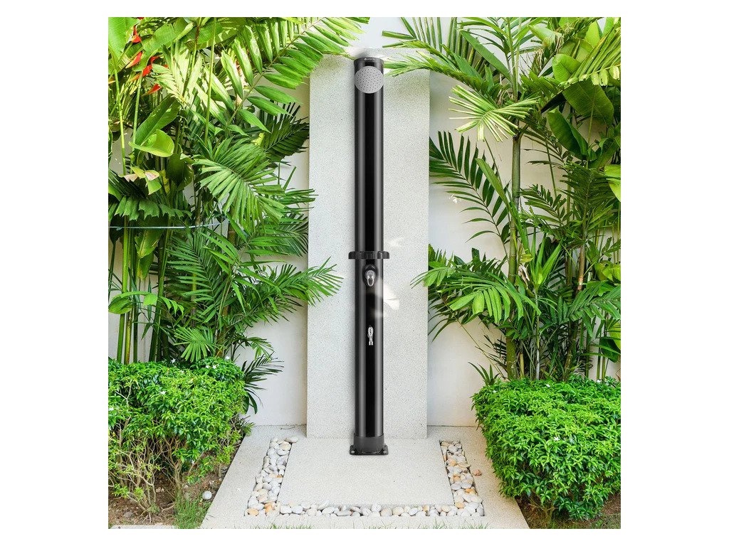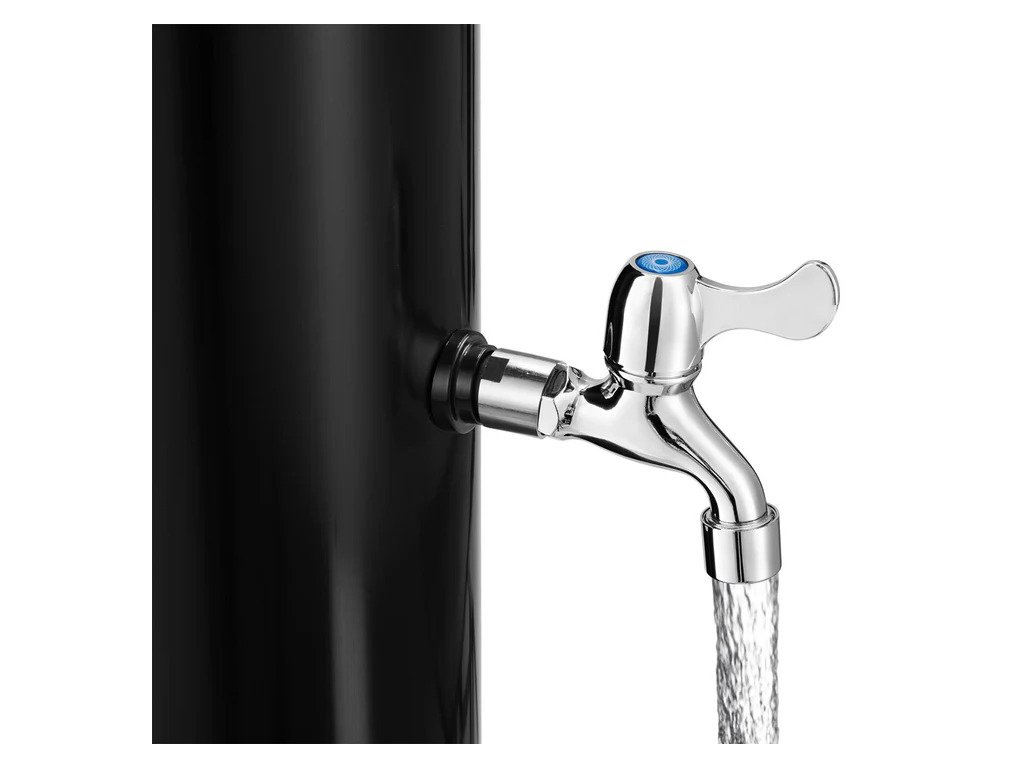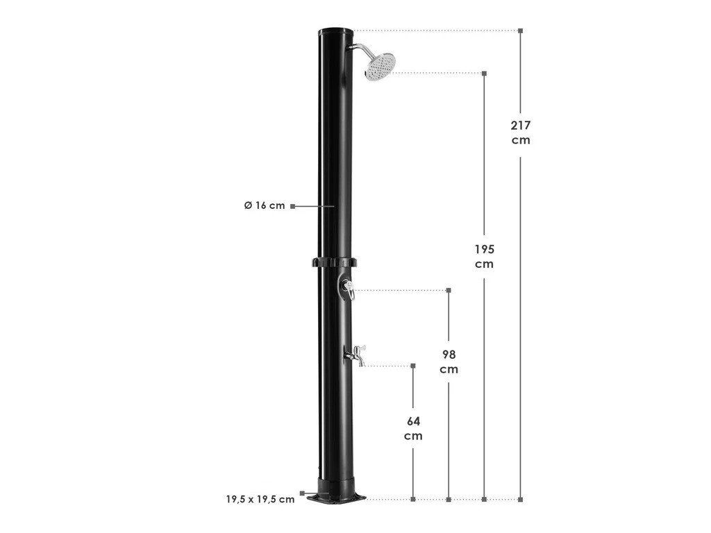 Solárna sprcha Victoria je ideálnym riešením pre každého, kto si chce dopriať príjemnú vonkajšiu sprchu. Elegantné čierne prevedenie v kombinácii s odolnými materiálmi a veľkou otočnou hlavicou poskytne osviežujúci zážitok celej rodine. Sprcha je vybavená 35-litrovou nádržou na vodu, ktorá vďaka solárnemu ohrevu umožňuje nastavenie teploty až do 60 °C. Plynulá regulácia teploty a maximálny tlak vody 3,5 bar zabezpečujú pohodlné a osviežujúce sprchovanie, či už po kúpaní v bazéne alebo pri aktívnych dňoch na záhrade.