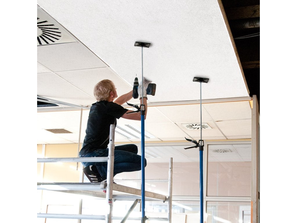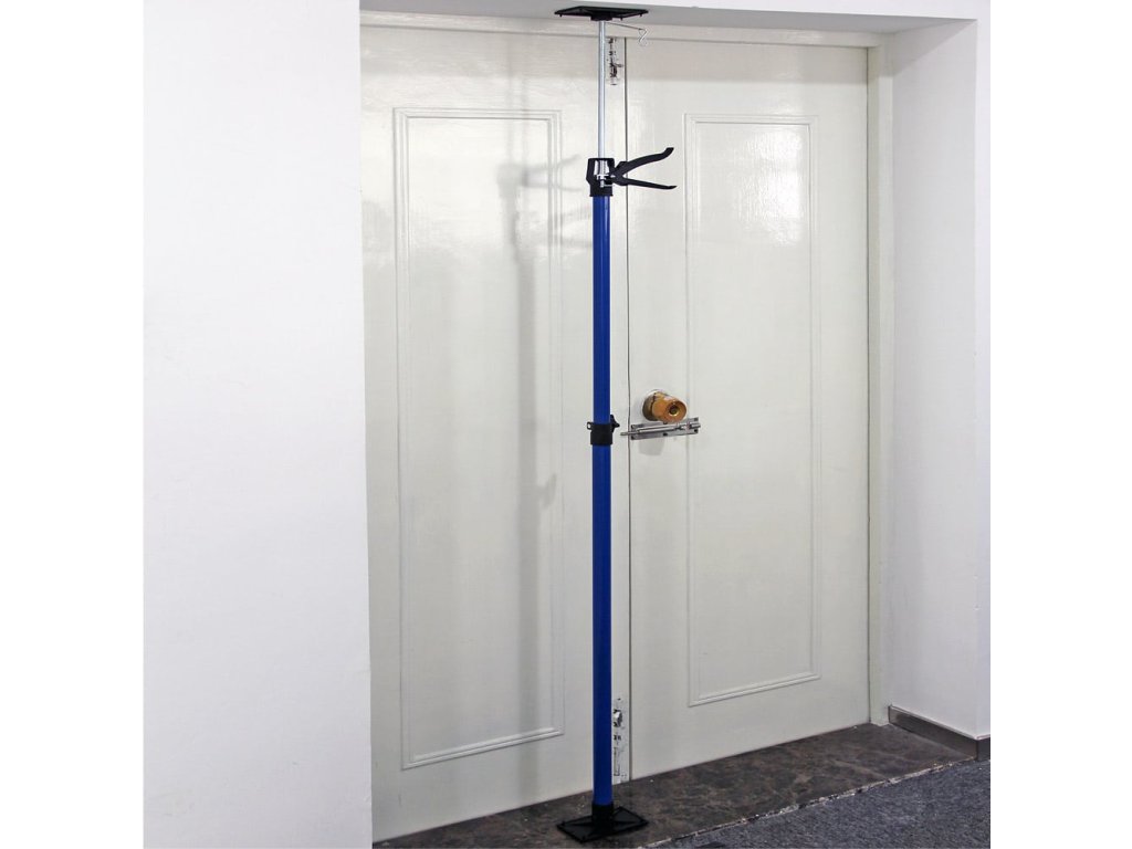 Stavebná podpera je všestranná a možno ju použiť nielen na montáž dverí, ale vďaka pevnému oceľovému rámu a nosnosti až 30 kg je tiež ideálnou pracovnou pomôckou v dielni aj doma. Protišmykové pogumované prítlačné platne poskytujú pevnú podporu. Manipulácia je vďaka ovládacej páke veľmi jednoduchá. Stavebná podpera má plynule nastaviteľnú výšku.