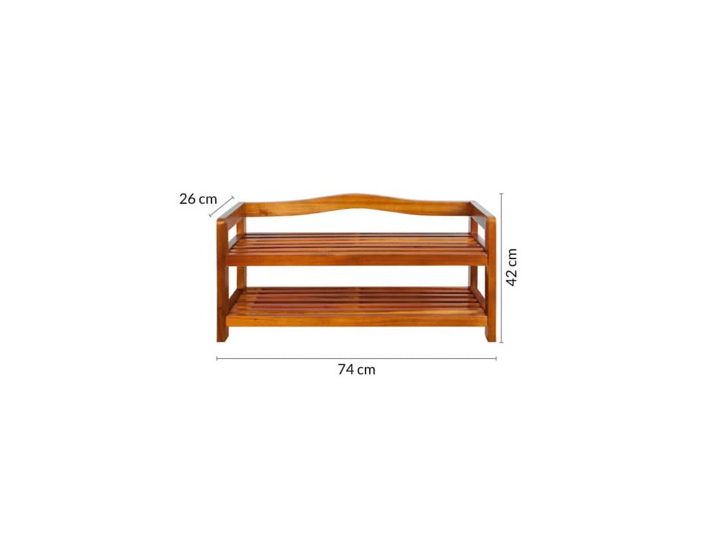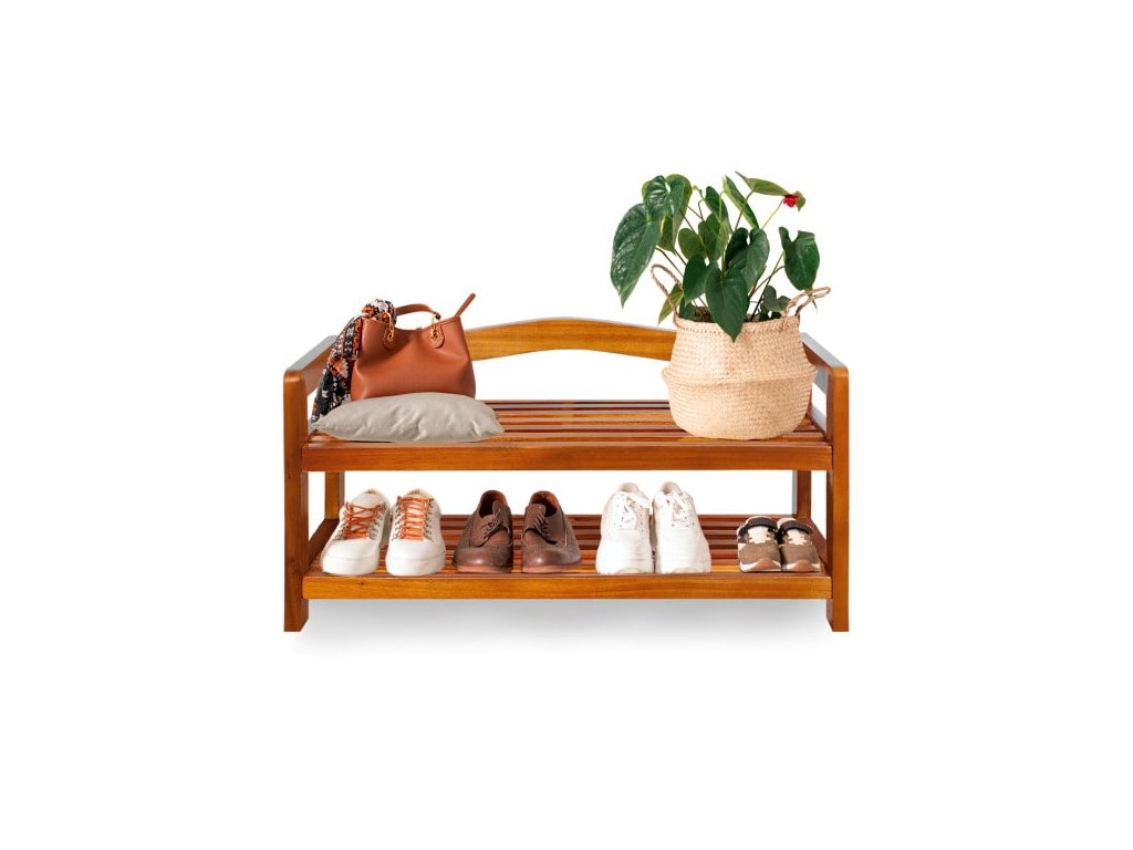 Stojan na topánky vyrobený z pevného agátového dreva s dostatkom priestoru pre vaše topánky. 2 stabilné police poskytujú dostatok priestoru pre vaše topánky. Využitie ako botník alebo polica na odkladanie rôznych vecí.