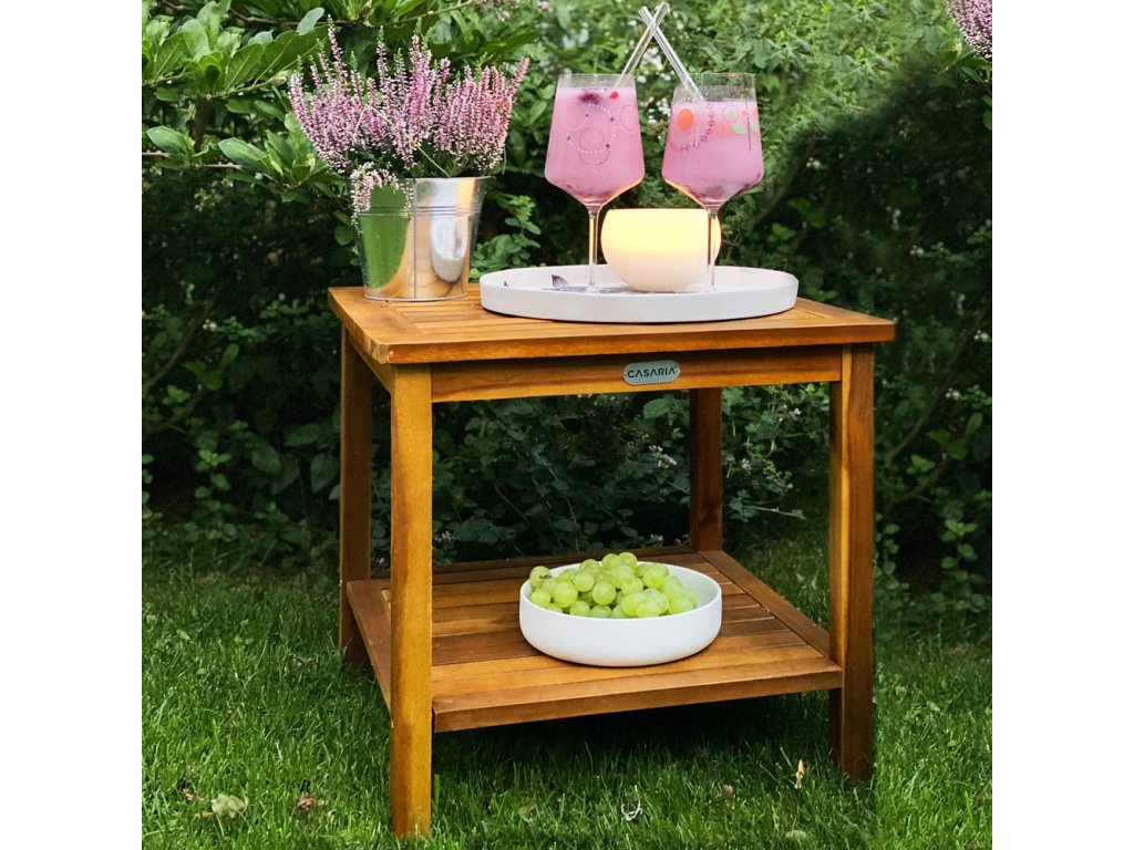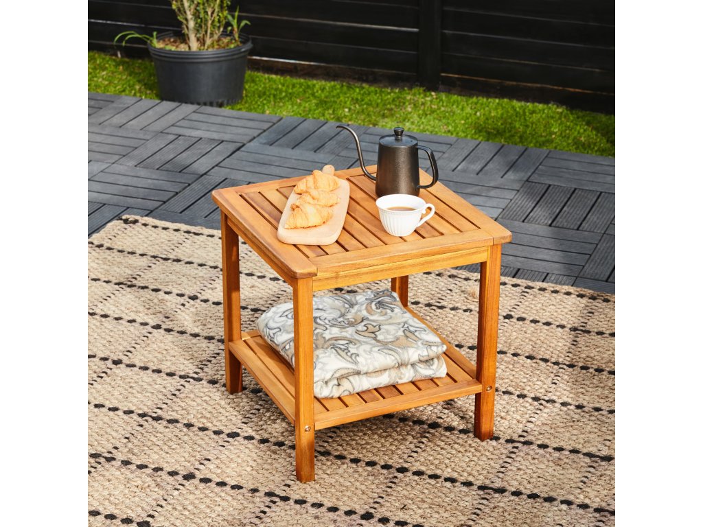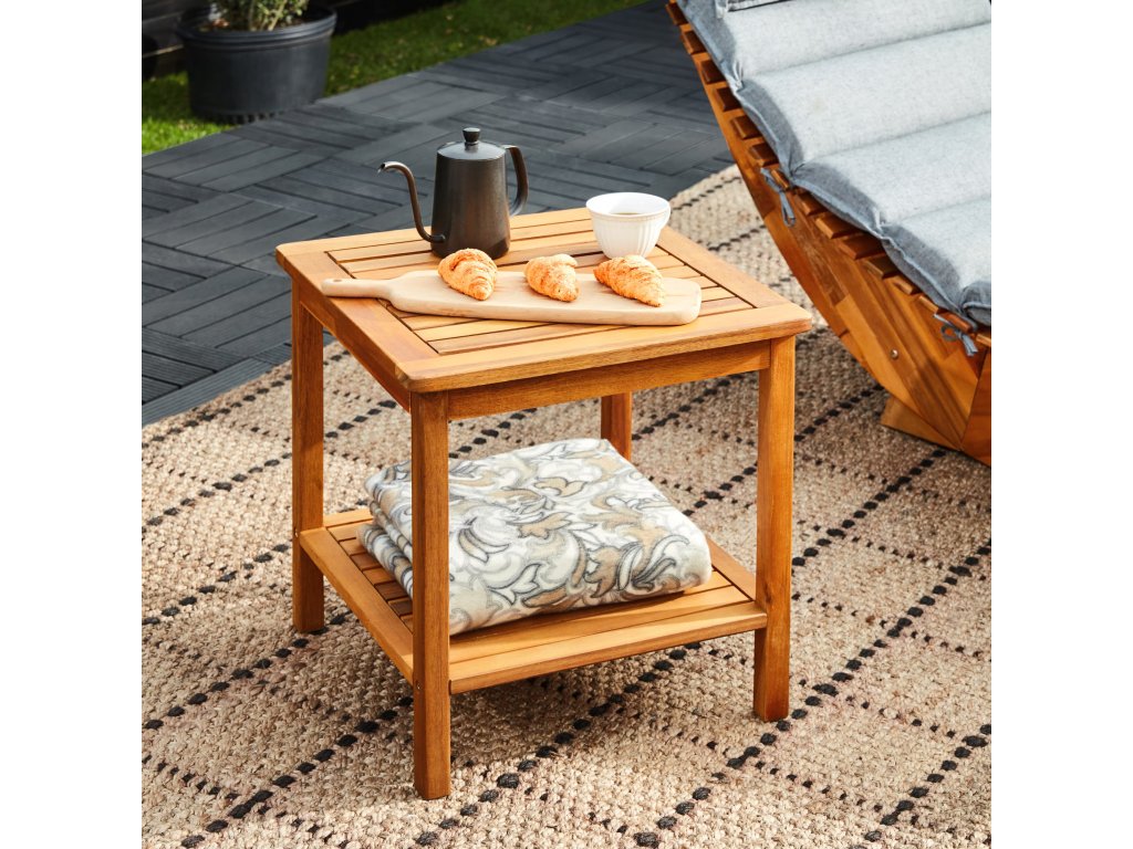 Príručný stolík, vyrobený z kvalitného naolejovaného agátového dreva, je univerzálnym kusom nábytku. S dvoma priestrannými odkladacími plochami ponúka široké možnosti využitia – od praktického stolíka po elegantný konferenčný kúsok, či rustikálny stojan na kvety. Tento stolík, s nosnosťou až 80 kg na vrchnej časti a 20 kg na spodnej, vyniká svojou funkčnosťou a stabilitou. S kvalitným spracovaním predstavuje ideálne miesto na uskladnenie rôznych predmetov, čím sa hodí do interiéru aj exteriéru. Údržba je veľmi jednoduchá - stačí ho očistiť vlhkou handričkou. Pre zachovanie intenzívnej farby a dlhodobej životnosti odporúčame pravidelnú starostlivosť pomocou špeciálneho oleja na záhradný nábytok.