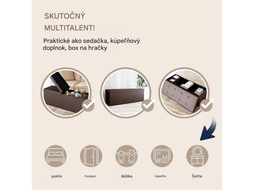 Úložná lavica s výklopným vekom 115x38x38 cm - hnedá