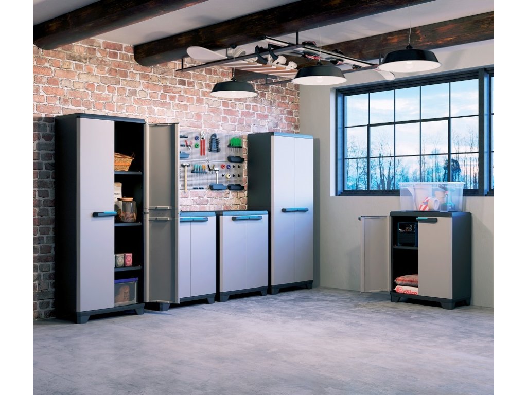 Robustná skrinka je ideálna do garáže, na chatu, terasu alebo do pivnice. Má pevné pánty a možnosť uzamknutia, čím skrinka zaručuje vysokú odolnosť. Má 3 nastaviteľné police ktorá každá ma schopnosť uniesť až 15 kg zaťaženie.