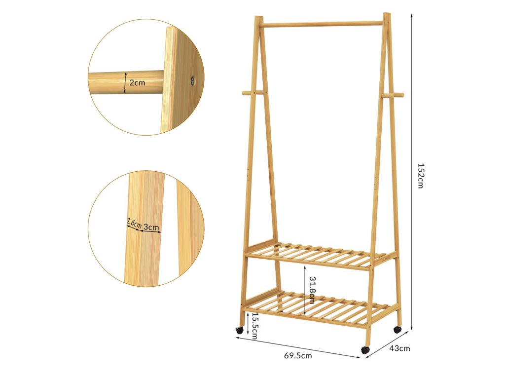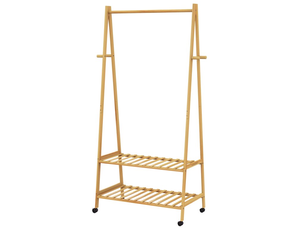 Vešiak na oblečenie s kolieskami 155x70x45cm - bambus