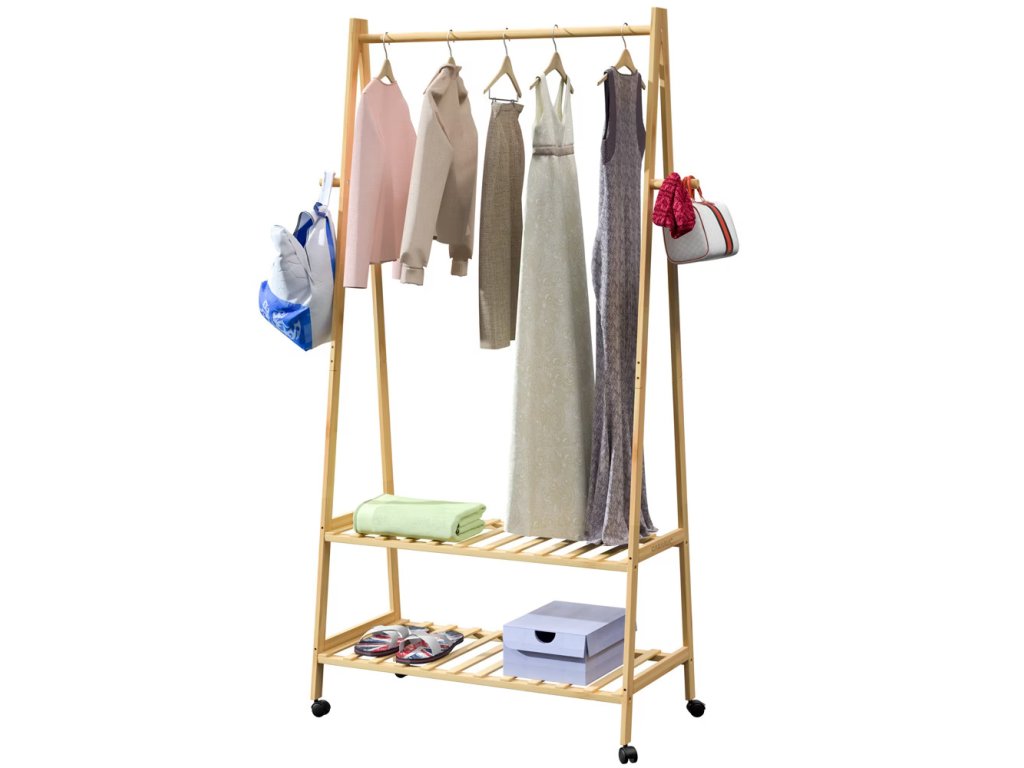 Praktický vešiak na oblečenie s rozmermi 155x70x45 cm ponúka dostatok priestoru pre vaše každodenné veci a pritom zaberá minimum miesta. Je vybavený štyrmi háčikmi, vešiakom na šaty a dvomi stojanmi na topánky, ktoré vám umožnia mať všetko vždy po ruke. Vďaka štyrom kolieskam ho môžete jednoducho premiestniť do akejkoľvek miestnosti podľa potreby. Robustná konštrukcia unesie až 50 kg a priestor na topánky má nosnosť 10 kg.Výhody produktu: