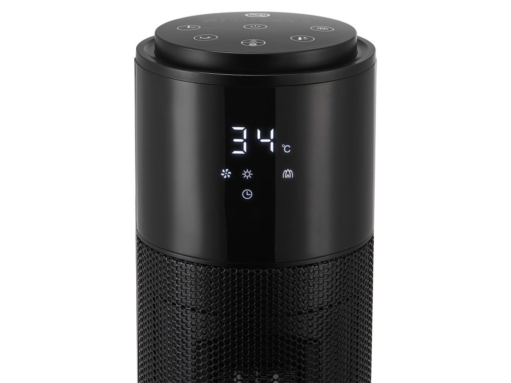 Ohrievač je možné ovládať buď pomocou integrovaného dotykového panela na hornej strane alebo pohodlne pomocou diaľkového ovládača. Vďaka veľkému a dobre čitateľnému LCD displeju máte vždy prehľad o požadovanej teplote a zvolených funkciách. Ohrievač má integrovanú ochranu proti prehriatiu a znižuje tak prehrievanie. Prístroj má navyše automatické vypnutie v prípade prevrátenia.