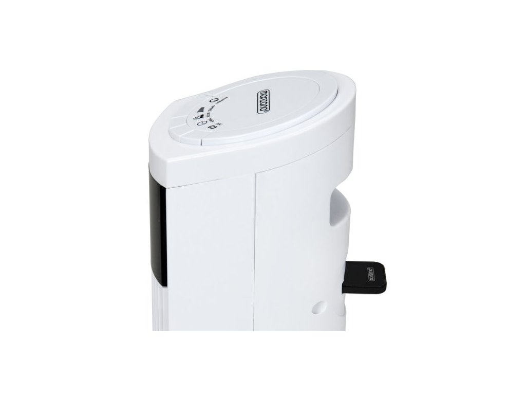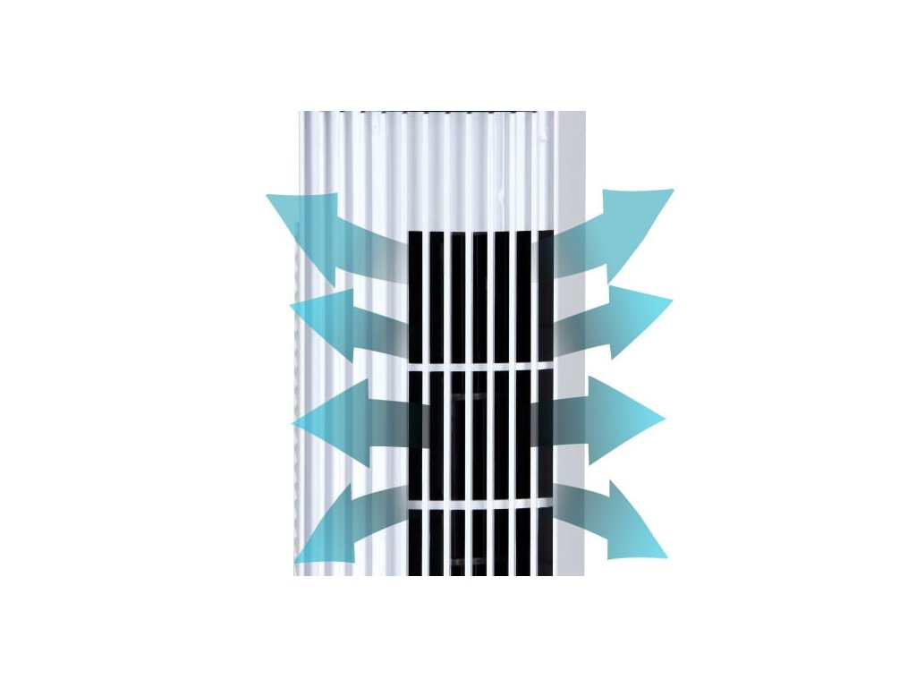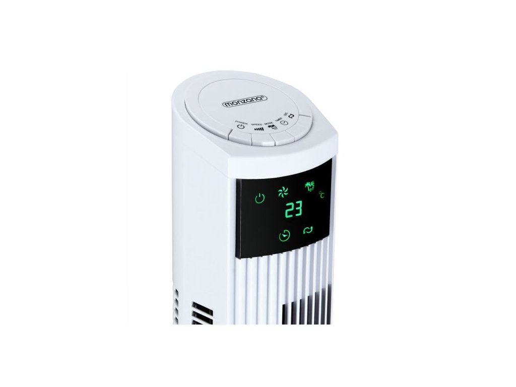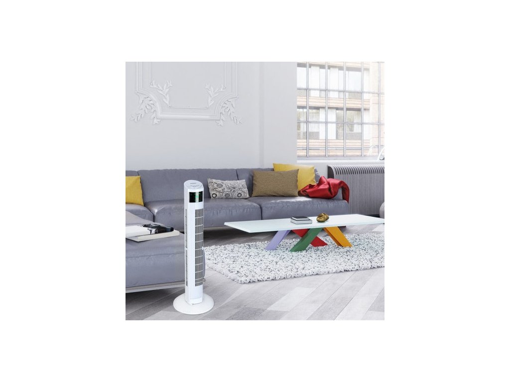 Vežový ventilátor s displejom a funkciou turbo prináša príjemný chlad do vášho domu alebo kancelárie rýchlosťou až 7 m/s. Pomocou diaľkového ovládača si môžete vybrať medzi 4 rôznymi úrovňami rýchlosti. Ventilátor sa otáča smerom dopredu a dozadu pod uhlom 90° a vďaka časovaču si môžete presne nastaviť, ako dlho má byť ventilátor aktívny. Počet stupňov zobrazený na displeji udáva teplotu v miestnosti. Dodávaný je s praktickým aroma boxom a 2 aroma podložkami. Box sa dá jednoducho pripevniť na ventilátor, a tak si okrem príjemného vánku môžete vychutnať aj vôňu podľa vlastného výberu.