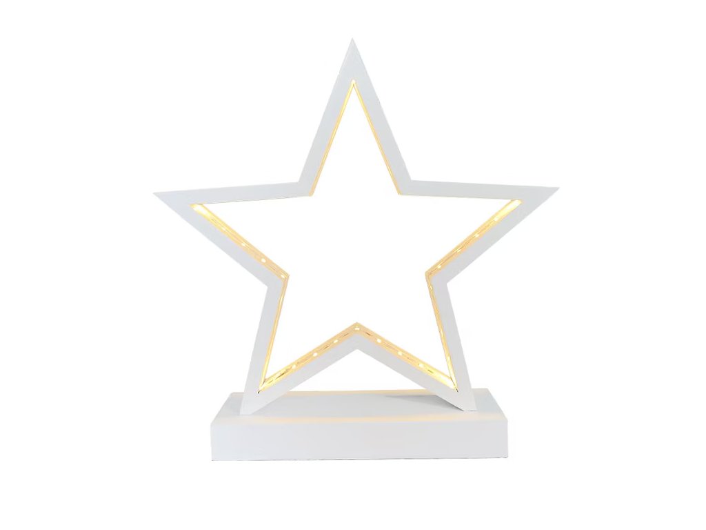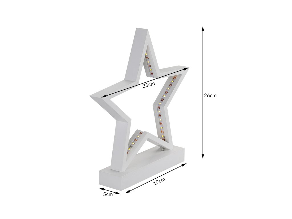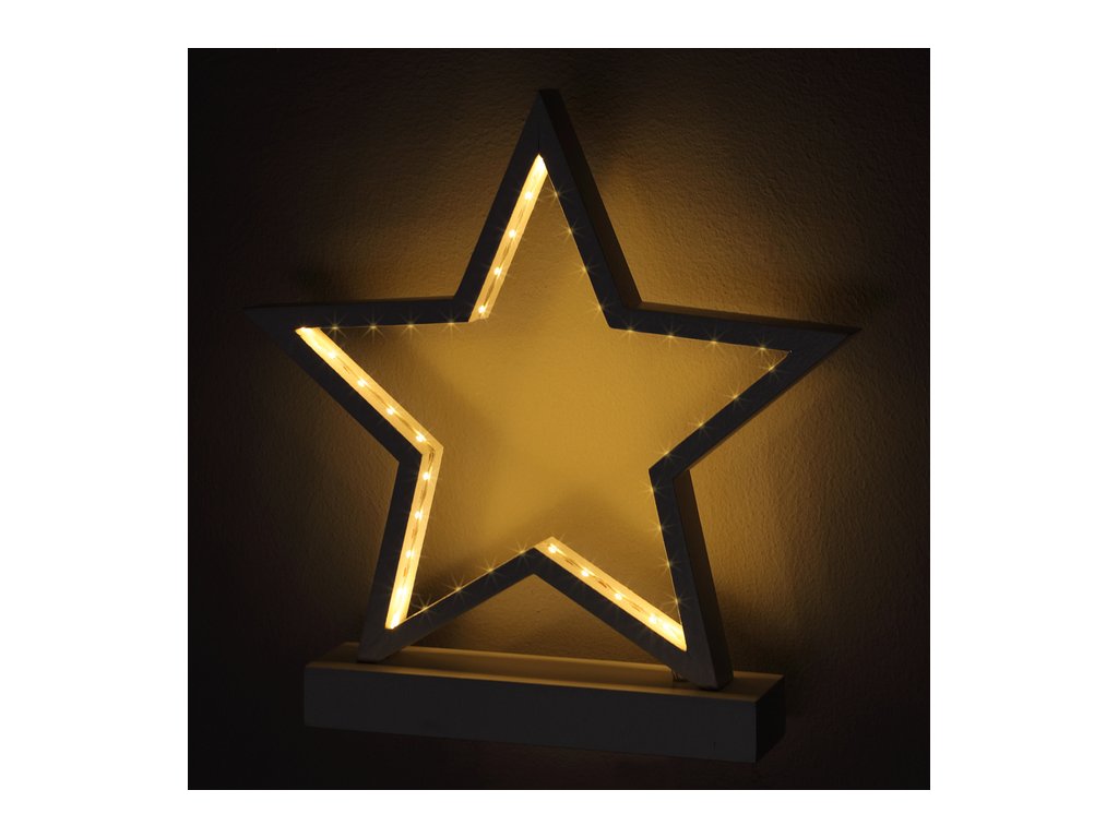 Moderné drevené svietidlo v tvare hviezdy môžete umiestniť kdekoľvek. LED pásik vyžaruje príjemné teplé biele svetlo, ktoré dokonale navodí sviatočnú atmosféru, najmä počas zimných večerov. Vďaka 45 LED diódam má nízku spotrebu energie pri optimálnej svietivosti. Stabilný podstavec zabezpečuje spoľahlivú oporu na parapete, krbe alebo komode.
