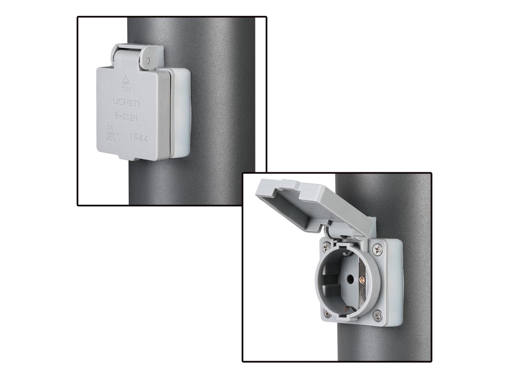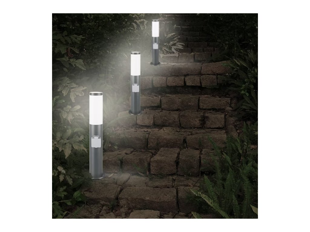 Vonkajšie svietidlo z nehrdzavejúcej ocele je vybavené aj zásuvkou, je odolné voči striekajúcej vode (IP44) a poveternostným vplyvom, a preto je ideálne pre vnútorné aj vonkajšie použitie. Skvelé osvetlenie pre príjazdové cesty, dvory, záhrady atď.