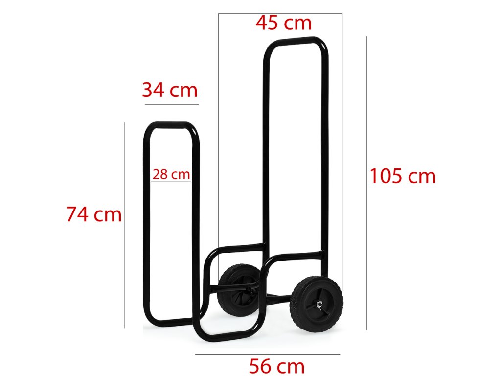 S týmto praktickým vozíkom na drevo si jednoducho zabezpečíte zásoby dreva na zimu. Vozík sa vďaka gumeným kolieskam dá ľahko a bezpečne riadiť. Stabilná oceľová rúrková konštrukcia unesie záťaž 80 kg.