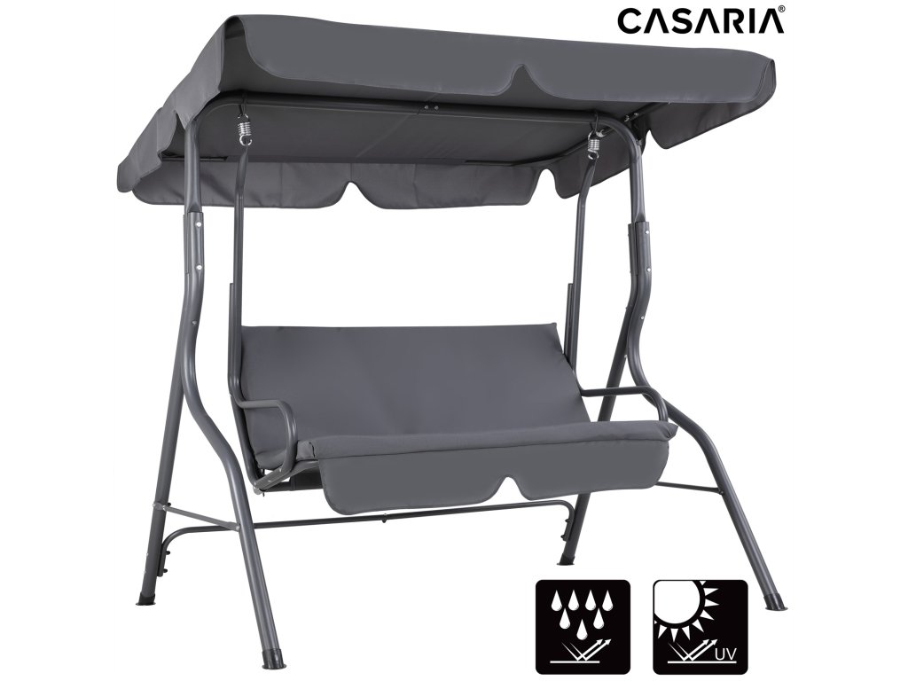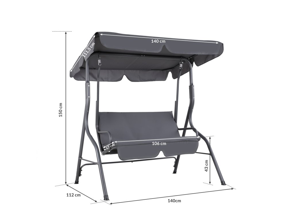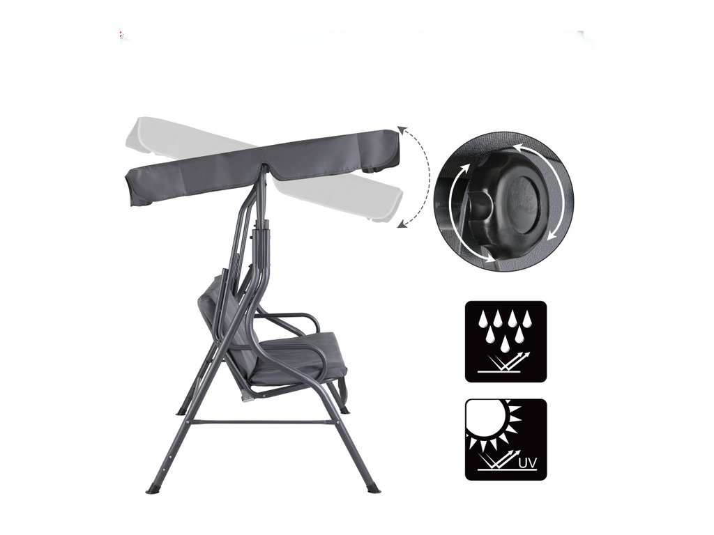 Pohodlná hojdačka je skvelou voľbou pre vašu záhradu, terasu alebo balkón. Nastaviteľná slnečná strieška poskytuje ochranu pred priamym slnkom a môžete ju prispôsobiť podľa svojich potrieb. Čalúnenie aj strecha sú vyrobené z kvalitnej tkaniny, ktorá je vodoodpudivá a ideálna na vonkajšie použitie. Rám hojdačky je z odolnej a pevnej ocele s práškovým nástrekom, ktorý ju chráni pred poškriabaním a koróziou. Stabilitu zabezpečuje H-tvar nôh, ktorý poskytuje ešte väčšiu pevnosť. Pieskovaný povrch konštrukcie dodáva matný vzhľad a zaujímavý vizuálny detail.