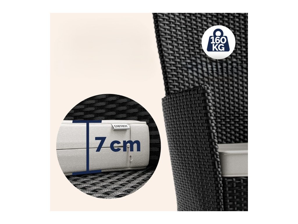 Záhradný ratanový set Manacor - čierna, biele podušky