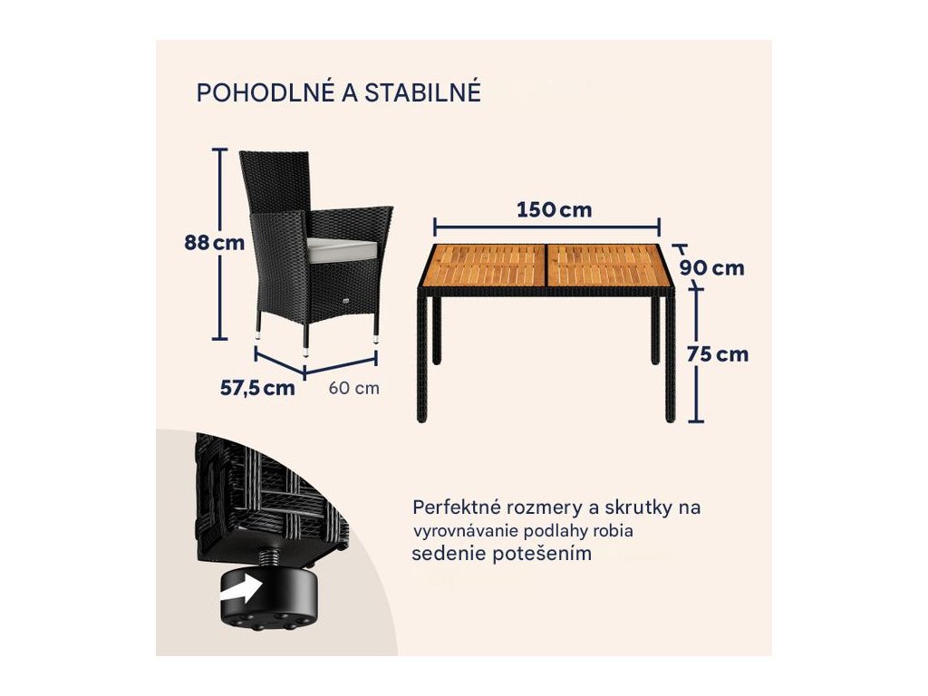 - Stôl a kreslá s výškovo nastaviteľnými nožičkami
