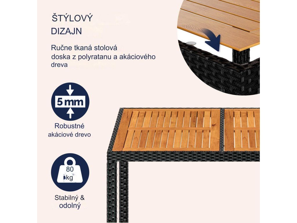 - Materiál stolovej dosky: agátové drevo