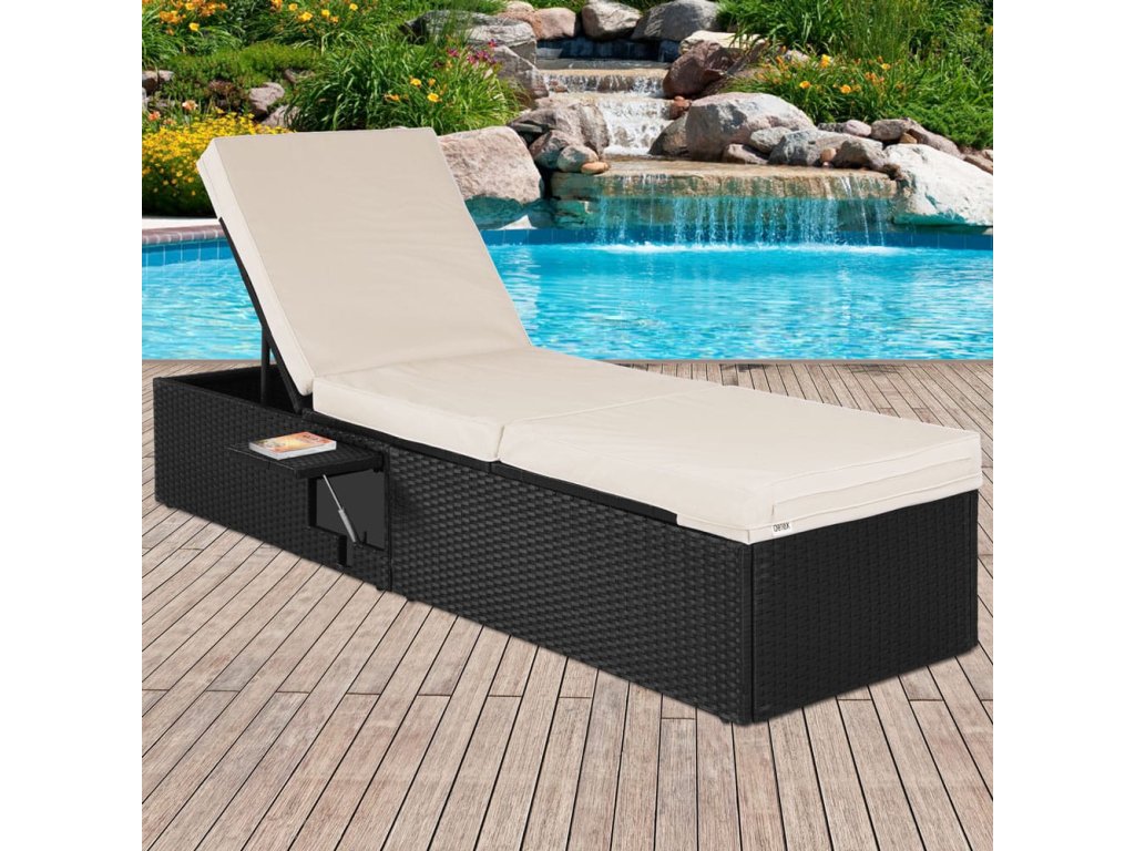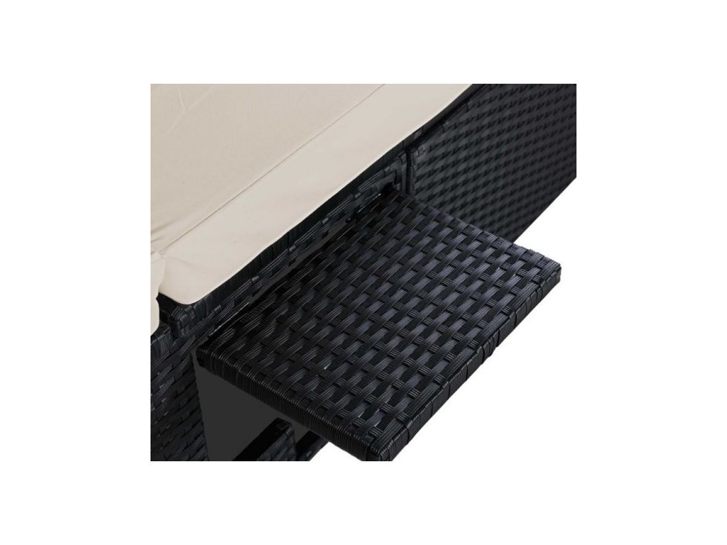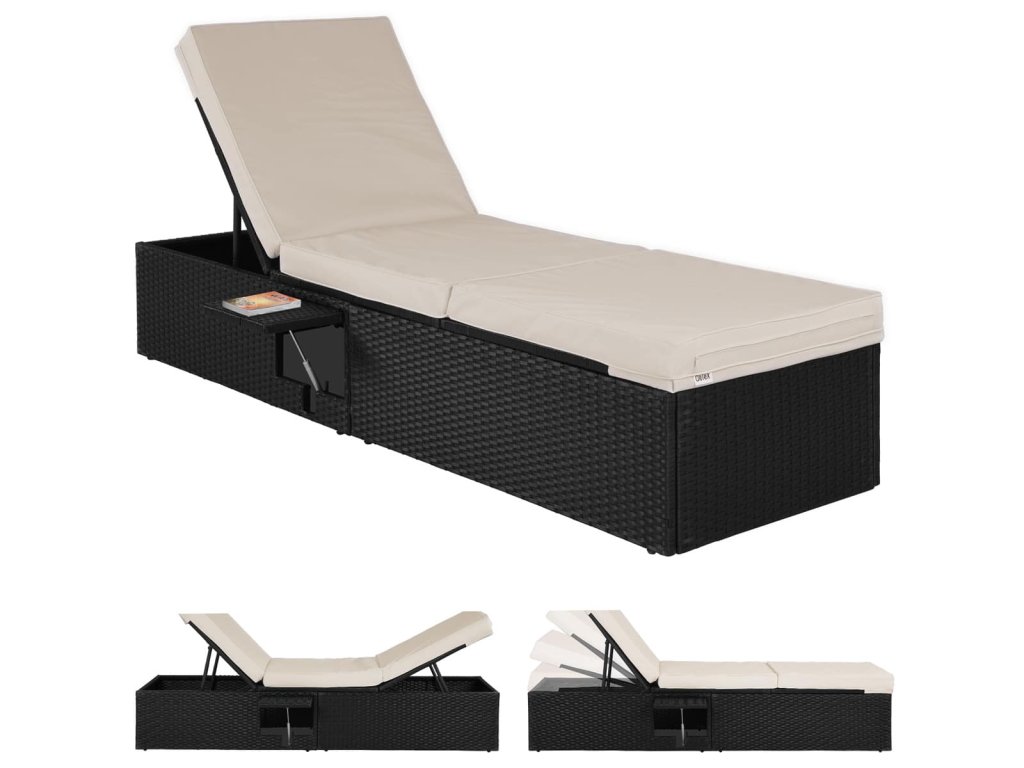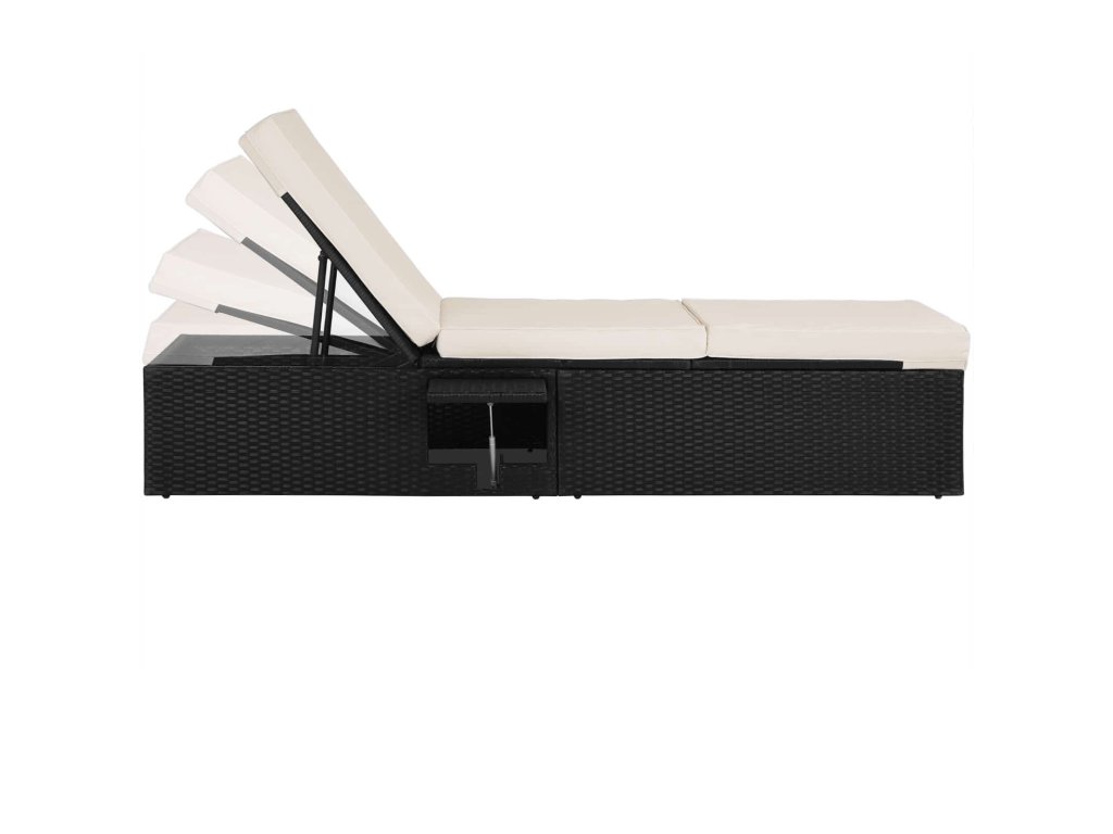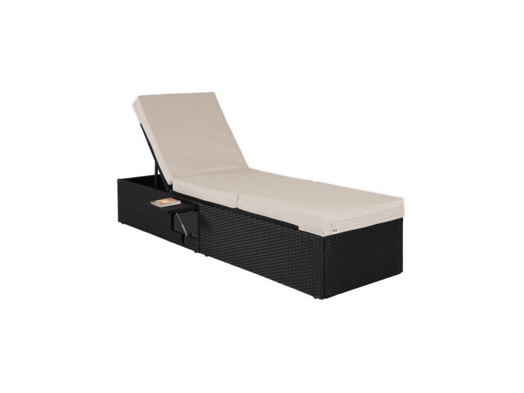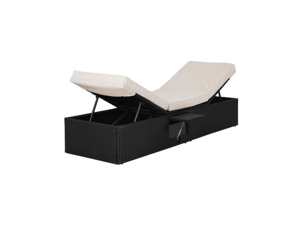 Moderné ležadlo z polyratanu je tá správna voľba pre Vašu terasu. Je vhodné do interiéru ako aj do exteriéru. Lehátko je výškovo nastaviteľné v oblasti hlavy aj nôh, pomocou stabilnej dvojitej konzoly. Vzájomne prepojená čalúnená poduška má hrúbku 7 cm a je pripevnená praktickými remienkami na slučky. Stôl napravo slúži ako odkladací priestor na nápoje, knihy a podobne. Dá sa ľahko zložiť pomocou piestu.