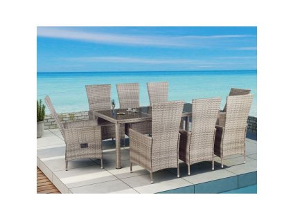 Záhradná ratanová zostava Berlin 1+8 - hnedá/drevo