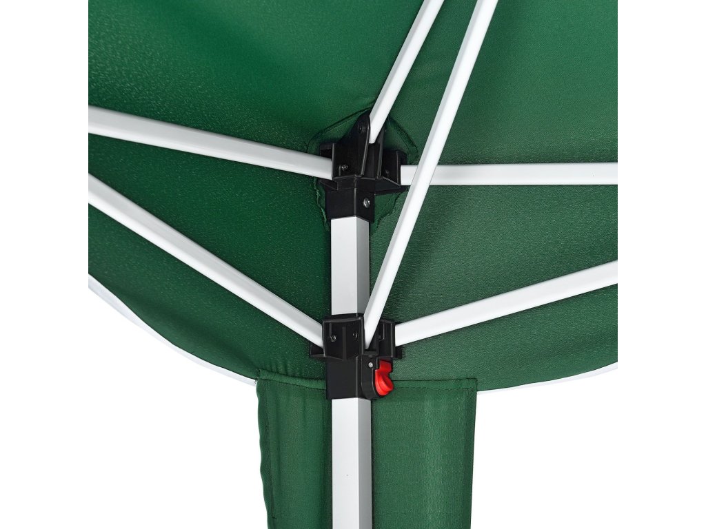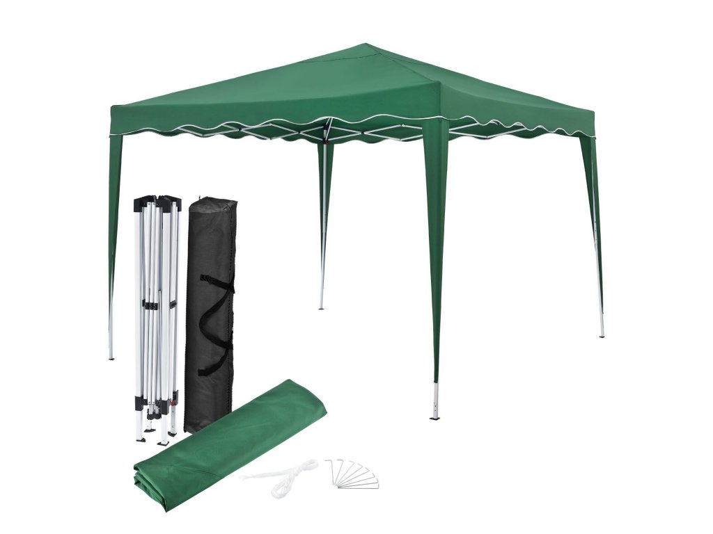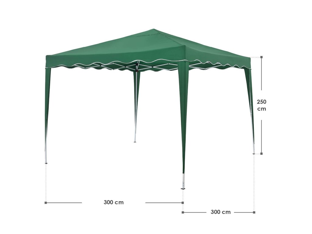 Záhradný stan Vivara 3x3m v zelenom prevedení s taškou poskytuje dokonalú ochranu pred slnkom. Vďaka svojej nepriehľadnej streche z vodoodpudivej polyesterovej tkaniny 210D poskytuje altánok príjemný tieň. Vďaka skladaciemu mechanizmu možno záhradný stan zložiť a rozložiť v priebehu niekoľkých minút. Osem kolíkov a štyri kotviace laná umožňujú bezpečné upevnenie stabilného oceľového rámu k zemi. Oceľový rám s práškovým nástrekom je možné nastaviť do troch rôznych výšok. Prášková vrstva zvyšuje odolnosť rámu voči vonkajším vplyvom. Nohy možno ľahko ukotviť k zemi pomocou ôsmich zemných hrotov. Slučky na rohoch umožňujú ľahké pripevnenie štyroch kotviaich lán. Tie dodávajú záhradnému stanu dodatočnú stabilitu.